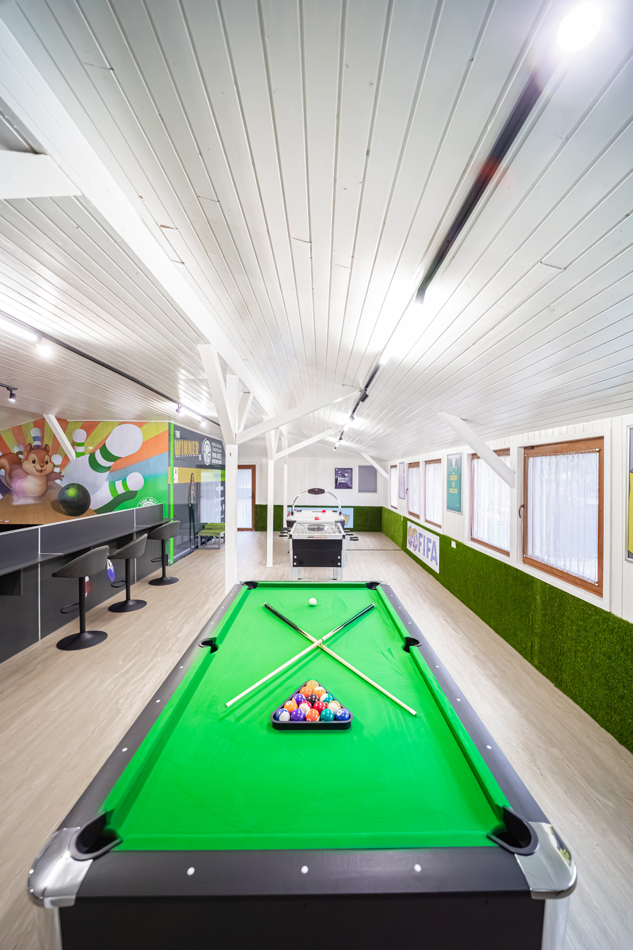 Objevte zbrusu novou bowlingovou dráhu našeho hotelu v Bükfürdő, kde na milovníky her čekají dvě moderní dráhy! Kromě bowlingu zaručuje zábavu pro všechny věkové kategorie také stolní fotbal, kulečník a vzdušný hokej. Můžete si odpočinout a zároveň zahrát v příjemném a přátelském prostředí, hned vedle termálních lázní Bükfürdő. Parkování je pohodlné a bezplatné, takže se stačí soustředit na dobrou náladu. Dráhy jsou otevřeny od 8:00 do 21:00, *po předchozí domluvě*.